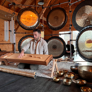 We begin with a ceremonial cacao blessing—a sacred, heart-opening elixir that warms the body, deepens presence, and prepares you to receive. As the cacao’s energy flows through you, immerse yourself in a soundscape woven from the deep resonance of gongs, the grounding hum of singing bowls, and the ethereal, harp-like tones of the kotamo.